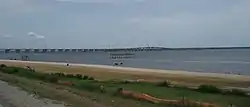 The new bay bridge, and the city of Bay St. Louis on the western shore