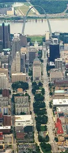 The Gateway Mall in St. Louis, Missouri is an open green space running linearly, one block wide, from the Gateway Arch at Memorial Drive to Union Station at 20th Street. Located in the city's downtown, it runs between Market Street and Chestnut Street.