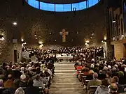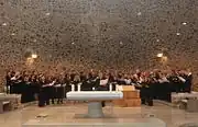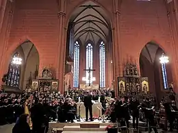 Concerts and services have also been performed by guest ensembles such as the Ukrainian chamber choir OREYA.[17] The choirs of St. Martin travelled to England in 2006 to attend services and evensong in Christ Church, Oxford, Salisbury Cathedral and St Paul's Cathedral, London. They travelled to Leipzig in 2008 to hear the Thomanerchor in Motette and services.[16] In 2009 they sang with other choirs of the diocese in the Limburg Cathedral from the Missa primi toni octo vocum of Stefano Bernardi for double chorus, conducted by Joachim Dreher and Franz Fink.[18] In 2016, they performed at the Cathedral the premiere of the oratorio Laudato si' with the choirs of Liebfrauen, Frankfurt, conducted by the composer Peter Reulein. The performance was repeated at the Frankfurt Cathedral in 2017.[19]