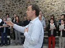 Franz Fink in rehearsal of Immortal Bach by Nystedt for five four-part choirs, 24 April 2012