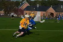 St. Mary's Seahawks varsity lacrosse player in motion.