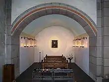 The eastern part of the crypt was added around 1500.[3] A Baroque facade was later added to the lower west front of the church.[4]