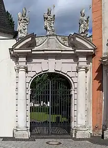 - ↑ "St. Matthias' Abbey: Detail of lower half of facade of the abbey church with later Baroque additions", Raclin Murphy Museum of Art, University of Notre Dame
