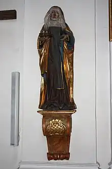Ignaz Waibel created the sculpture of the Good Shepherd around 1700, which is placed in the choir room[15] opposite the 18th century figure of St. Nepomuk. In the rear part of the nave, on one side, there is a sculpture of St. Odile, made around 1500, which used to be in the small Gothic chapel of St. Ottilie on the outskirts of the village, and on the other, a statue of St. Anthony of Padua.