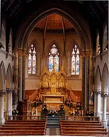 In the 1960s, the church was extensively modernised in preparation for the centenary. Then, following the Second Vatican Council, work began in the 1970s to modernise the sanctuary for the new liturgy; the high altar, pulpit and later the altar rails were all removed.[3]