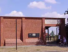 From then on until 1844, the desolation continued until it had engulfed the church, cloister, kitchen, and refectory.[29] Other parts of the site suffered degradation. From 1770 to 1844, the Alfred Beer & Company brewery operated within the abbey precincts.[34] In 1804, a portion of the site was divided into lots and sold. The Great Court was used as a bowling green and skittle ground. Ethelbert's Tower, the remaining tower of the Norman abbey, was taken down in 1822.[28] Robert Ewell, in his Guide to St. Augustine’s Monastery and Missionary College wrote that in the first half of the 19th century, the abbey "reached its lowest point of degradation".[32]