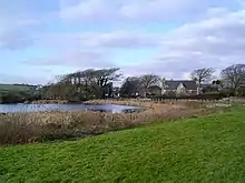 The largest area of standing water is Pwll y Mêr. This is a village pond within the St Brides Major Conservation Area.[8] The outflow from the pool enters a crevice in the limestone to join the Afon Dawel (Silent River), an underground stream.[9]