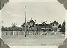 St Columba's Convent was opened by the recently appointed coadjutor, Archbishop Duhig, on 8 June 1913, the eve of the feast day of St Columba of Iona.[2] (St Columba had been exiled to this island off Scotland in 563 and later established his ministry there.) A crowd of around 500 visitors attended the ceremony. Father Nolan, the Parish Priest indicated that the convent had cost £7,267 and he needed a further £2,600 to clear the debt. A collection was then taken up, which yielded around £1,600. Speakers praised the efforts of the builder, John Draney and the Clerk of Works, Michael Kelly, as well as the fund raising efforts of the ladies committee. It was expected that subsequent fund raising would focus on building a new church and presbytery for Father Nolan. Michael Kelly departed Dalby the following week to take up the position of Clerk of Works for St Brigid's Church at Red Hill, Brisbane.[1]