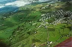 ![]() St Dennis from the air showing the church built inside a hillfort | |