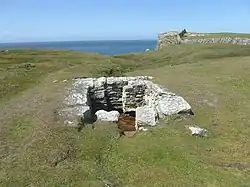 St Gwenfaen's Well lies in an isolated position in a cleft in the rock in a dell overlooking the cliffs of Porth Gwalch (Welsh: Hawk Bay) in the community of Rhoscolyn in the south west of Holy Island, Anglesey.[1][2][3] The well is just under 1 km (0.6 miles) west by south west of the village of Rhoscolyn which is the location of St Gwenfaen's Church, part of the ministry area of Holy Island (Church in Wales).[1][4][5]