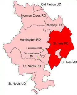 52°22′N 0°04′W / 52.36°N 0.06°W St Ives was a rural district in Huntingdonshire from 1894 to 1974, surrounding the urban area of St Ives. It was formed under the Local Government Act 1894 from the part of the St Ives rural sanitary district which was in Huntingdonshire (the rest, being in Cambridgeshire, formed the Swavesey Rural District).