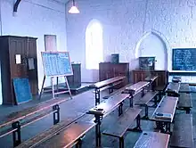 St. James's School opened in the Eve Hill area of Dudley in 1842 for pupils aged 5–11. In 1989–1990 it was demolished, then rebuilt at the Black Country Living Museum.