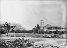 It was not until 1872 that the parish of Townsville was established with Fr Connolly as parish priest. The first church in the new parish, St Joseph's, was opened by Fr Connolly in 1872. The new timber building was located on The Strand close to the site of the present church. This church, which was the first constructed in the town, was destroyed by flood waters which swept the building out to sea during torrential rain in 1892.[1][2]