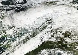 The St. Jude storm, also known as Cyclone Christian,[2] and other names, was a severe hurricane-force European windstorm that hit Northwestern Europe on 27 and 28 October 2013 causing at least 17 deaths. The highest windspeed was in Denmark, where a gust of 194.4 km/h (120.8 mph) was recorded in the south of the country (in Als) on the afternoon of 28 October, the strongest wind recorded in the country's history.[3]