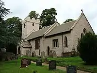 The church is built of Old Red Sandstone and the style is Early English.[2] The tower has a corbelled parapet.[3]