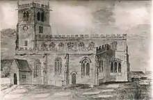 The Domesday Book (c. 1086) records the presence of a priest and a church on the site of the present church, and it is shown on an 1840 map of the town centre of Sandbach.[3] This was replaced by another church erected about the time of Henry VII. This church was built in sandstone which became badly weathered. The present church dates largely from the considerable degree of rebuilding by Sir George Gilbert Scott in 1847–49. Much of the existing fabric was replaced and the remaining fabric was encased in new stone. The east end of the church was extended by some 40 feet (12 m) and the tower was rebuilt as a copy of the former tower.[4] The builders were Cooper and Son of Derby. The stone, which came from quarries in the Mow Cop area, was given by Sir Philip Grey Egerton M.P.[5] Part of the west end had to be repaired in 1894–95 following a fire.[1] In 1930 Austin and Paley added a choir vestry, and a north porch, at a cost of £1,331.[6] The parish registers date from 1562 and are complete. The churchwardens' accounts prior to 1888 are lost.[4]