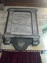 The church includes a memorial to Lieutenant-General Peregrine Lascelles (1685-1772), who served in a number of 18th-century wars, including the Battle of Prestonpans in Scotland in 1745.[5]