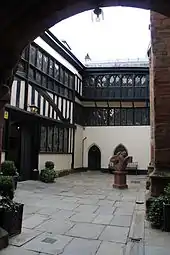 The guildhall originally served as the headquarters of the merchant guild of St Mary, and subsequently of the united guilds of the Holy Trinity, St Mary, St John the Baptist and St Katherine. Following the suppression of the chantries and religious guilds under King Edward VI in 1547, for a time it served as the city's armoury and as its treasury (until 1822),[2] as well as the headquarters for administration for the city council (until the Council House opened in 1920).[3]
