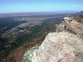 St Mary Peak / Ngarri Mudlanha is a mountain located in the Australian state of South Australia on the northwestern side of Ikara. It is the highest peak in the Flinders Ranges and the eighth highest peak in South Australia, with a height of 1,189 metres (3,901 ft).[2] It is located within the Ikara–Flinders Ranges National Park and the gazetted locality of Flinders Ranges, South Australia. It was for a time known as "St Mary's Peak", but was renamed according to guidelines deprecating the use of names implying possession.[3]