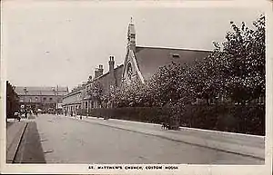 It was built in 1860 as a mission church of St Mark's Church, Silvertown and paid for by Charles Morrison, chairman of the Dock company. It later became a mission church of St Luke's, before being turned into a parish of its own in 1920. After 1945 it was served by clergy from the Church of the Ascension until 1960, when St Matthew's was closed - its parish was merged into that of Ascension the following year. It had been demolished for redevelopment by 1966.[1]