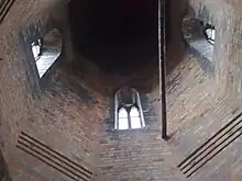 The stained glass windows are by Clayton and Bell.[2] They illustrate the life and works of Saint Paul.[4]