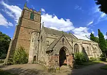 In 1598 the old Norman tower was replaced by the current tower which is embattlemented with four pinnacles.[1] The date can be seen on the exterior of the tower today. The church avoided destruction during the Civil War due to the efforts of the then Rector, Thomas Dowley, who although a Puritan managed to preserve the church from desecration.[1] Of the original Norman church nothing now remains. The oldest parts of the current building are the 14th-century chancel east wall and the 16th-century west tower.