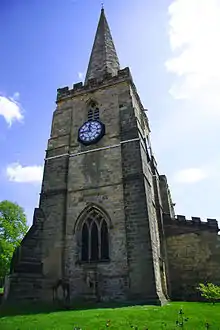 The Church of St Peter and St Paul, Pickering is the parish church of the market town of Pickering in the county of North Yorkshire. The church sits on the top of a small hill in the centre of the town and its spire is visible across the Ryedale district. The church is part of the Church of England Diocese of York, and houses a collection of medieval wall paintings. It is a Grade I listed building.[1]