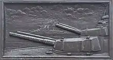 The statue stands on a high Portland stone pedestal with rounded ends. On its long sides are bronze reliefs: one with biplanes, to the west, and another with battleships, to the east. On one side below the biplanes plaque is the inscription "Give honour to the men of St. Saviours Southwark who gave their lives for the empire 1914–1918. Their names are inscribed within the parish church. May their memory live for ever in the minds of men." and on the other side below the battleships plaque is the inscription "This memorial was erected by the parishioners of Saint Saviour's Southwark in the year 1922." A model of the main figure was exhibited at the Royal Academy in 1923.
