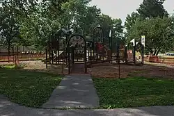 Stacy Park is a 35-acre park located on the border of Olivette and Creve Coeur. The park features a pavilion, a 2-mile walking path, a garden,[3] several baseball fields, playground, picnic tables, bathrooms, outdoor grills, a basketball court and one multi-use field.[4][5] The park also hosts a summer camp for kids and teenagers and offers field trips, swim days, crafts and games.