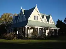 The house is in Carpenter Gothic style.[1] The adjacent brick stables were significantly damaged in the 1929 Murchison earthquake. During the 2000s, the stables were rebuilt in accordance with the original design.