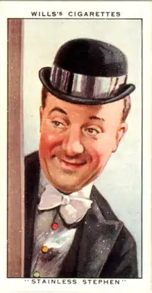 He retired in 1952.[3] As a postscript to his career Stainless Stephen appeared as a guest on Frost on Saturday on ITV on 15 November 1969. This edition was dedicated to the history of British Broadcasting to mark the first evening of colour transmissions on ITV. In the show the comedian gave the television audience a sample of his somewhat unusual comedy routine. This programme survives intact in the ITV archives and is available on DVD.[7]