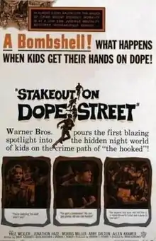 Stakeout on Dope Street is a 1958 American crime film directed by Irvin Kershner and written by Andrew J. Fenady, Irvin Kershner and Irwin Schwartz. It follows three teenagers who inadvertently get themselves involved in a drug ring. It was the directorial debut of Kershner. The film stars Yale Wexler, Abby Dalton, Morris Miller, Allen Kramer and Jonathon Haze. The film was released by Warner Bros. on May 3, 1958.