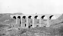 After the raid by the Imperial Camel Corps Brigade,[106] orders were issued for a raid, to be conducted between 22 and 23 May, on the Ottoman railway between Asluj and Hafir el Auja, to the south of Beersheba. This large-scale raid was made by specially formed demolition squadrons from the field squadrons of the Anzac and the Imperial Mounted Divisions, with the 1st light Horse Brigade providing cover, and the remainder of the Anzac Mounted Division deployed to watch for the approach of Ottoman forces from Beersheba. The Imperial Mounted Division and the Imperial Camel Corps Brigade were also deployed to cover the raid, which was completely successful. The demolition squadrons blew up 15 miles (24 km) of railway line as well as severely damaging a number of stone railway bridges and viaducts.[91][107][108]