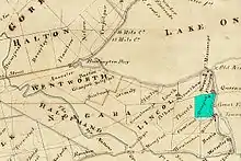 The first survey took place around 1776, during the American Revolutionary War. Twelve European-American families came to settle in the area, including the Cooks and Durhams from New Jersey.[1] It was developed and settled initially by Loyalists, primarily from New York State and other areas of the British colonies with the first two settlers being the Thomas McMicking and Philip Bender families. [1] and later the Thompson and Bastedo families, among numerous others.