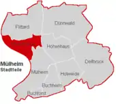 Map of Stammheim (shown in red) within the district of Mülheim