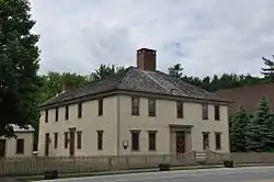 Stanley Tavern is located in the village center of Hopkinton, on the south side of Main Street (U.S. Route 202). It is a 2½-story wood-frame structure, with a hip roof and clapboarded exterior. The building originally consisted of a typical five bay wide, two bay deep, Georgian house with a central chimney, to which a single story kitchen wing with rear chimney was built on. Around 1800 the roof of the kitchen wing was raised to a full two stories. A two-story wing added in 1875 was demolished during restoration of the property in the early 2000s.[3]