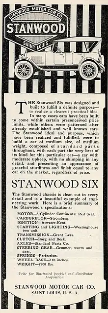 The Stanwood was an American automobile manufactured by the Stanwood Motor Company from 1920 until 1922 in St Louis, Missouri.[1]