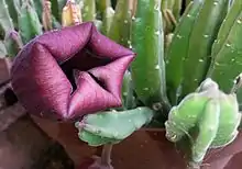 Its flower mimics the smell, color, and texture of decaying flesh to attract flies to lay their eggs on its corolla as a form of pollination.[4]