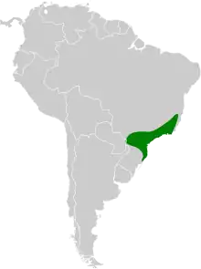 The star-throated antwren occurs at altitudes of between 300 and 1,500 m (980 and 4,920 ft) in the Atlantic Forest region of south east Brazil. The range extends from the southern coastal area of Bahia to the north-eastern corner of Rio Grande do Sul.[9]