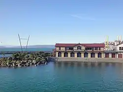 Star Boating Club has had three club houses. Over the years, the expansion of Wellington City and the development of its shoreline necessitated the Club to move four times.[2] The first two club houses were sheds. The first shed was near the site of the Wellington Cenotaph. In 1874 the club moved to its second shed next to Plimmer's Wharf on Victoria Street.[8][9] By 1883 the club needed to move again and it was at this point that the current building for the club was built. It was designed by club member and architect William Chatfield.[2] The building was built on sleepers so that as more reclamation took place, it could be moved closer to the shore.[9][10] It was officially opened on 7 June 1886[11] and shifted on rails, towed by a steam engine, in 1889.[9][12]