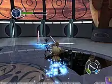 In Star Wars: Obi-Wan, the player controls Obi-Wan Kenobi during a sequence of events prior to and leading up to The Phantom Menace. The game is unique in that lightsaber combat is controlled using the right analog stick of the Xbox controller. By moving the stick in specific motions Kenobi will swing his lightsaber in a related motion. The character has a variety of Force powers at his disposal. One power provides a version of bullet time, slowing the area around the character, effectively allowing players to attack slowed-down enemies, or evade to cover. Other powers allow him to jump higher, move objects, and disarm enemies. Kenobi will perform a 180-degree turn with the press of a button, allowing the player to instantly spin and attack enemies behind them. Aside from the lightsaber, weapons such as blasters, ion grenades, and turrets can be utilized against enemies. The game supports a multiplayer mode called Jedi Battle, which allows two players to battle each other as any one of the Jedi characters unlocked. Characters may be unlocked by defeating them in the single-player Jedi arena, which becomes available between missions.