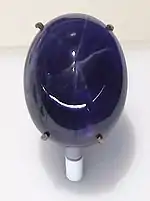 The Star of Bombay is a 182 carat (36.4-g) cabochon-cut star sapphire. According to Southern Jewelry News, "The Star of Bombay sapphire belongs to the mineral species corundum. Pure corundum is colorless, but trace amounts of transition elements like vanadium or chromium result in different colors in the crystal. The Star of Bombay’s violet-blue color is caused by the presence of titanium and iron giving the blue tint, and vanadium contributing to its violet back color."[2]