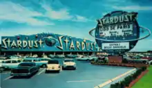 The Stardust opened at 12:01 p.m. on July 2, 1958. Attendees of the opening included Nevada governor Charles H. Russell, U.S. senator George Malone, and various celebrities such as Bob Hope, Milton Berle, and Ethel Merman.[51][52][53] The Stardust continued to face financial problems after its opening.[54][55][56] John and Rella Factor had agreed to pay off the Stardust's debt through monthly payments. However, a month after the opening, they requested a reduction in the amount of money to be paid out each month.[57] Up to that point, the Stardust had more than $1 million in liens filed against it, and a local glass company filed a foreclosure suit against the resort later in the month.[58] Also among the creditors were two attorneys,[57] seeking payment after representing the first group of proposed casino managers in 1955.[59][60][61][62]