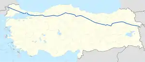D.100 is a west to east state road in Turkey. It starts at Kapıkule, the Bulgarian border check point, and ends in Gürbulak, the Iranian border check point.[1] Since it runs all the way from west to east it crosses most of the north to south state roads including D.650, D.750, D.850 and D.950.