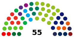 Since the 2019 provincial elections, the distribution of seats of the Provincial Council of Gelderland has been as follows:[3]