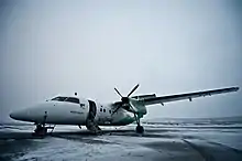 Lakselv Airport, Banak is the main airport serving central Finnmark, with its catchment areas including the municipalities of Porsanger, Karasjok and Lebesby.[53] Widerøe is the primary airline operating at the airport, with daily flights to Alta and Tromsø using Bombardier Dash 8 aircraft.[54] In 2011, the airport had 63,537 passengers.[55] It is classified as an international airport.[56]