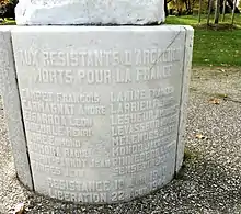 - ↑ "AUX RÉSISTANTS D'ARCACHON MORTS POUR LA FRANCE", Arcachon (Gironde), Musée de la Résistance en ligne