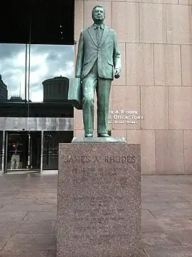 Governor James A. Rhodes is a 1982 bronze statue depicting Ohio governor Jim Rhodes by Gary Ross, installed along East Broad Street in front of the Rhodes State Office Tower in Columbus, Ohio, United States.[1]