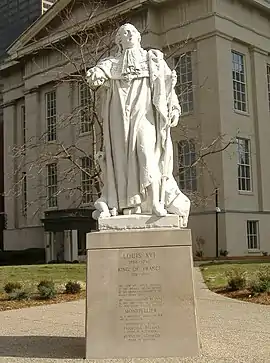 A statue of Louis XVI by Achille Valois arrived in Louisville, Kentucky, in December 1966 and was installed in July 1967, before being removed "due to safety concerns" in September 2020.[1]