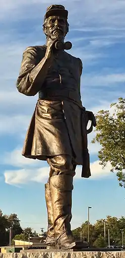 A Statue of Patrick Cleburne stands in Cleburne, Texas. The statue honoring Confederate General Patrick Cleburne, the town's namesake, was installed in 2015.[1][2]